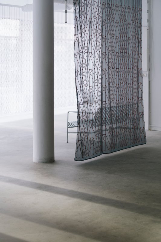 Embroidery, even mechanical, has a very subtle way of enhancing the curtains and what happens when you see through. The yarns somehow model the surface while informing very smartly the colors. It still conveys a certain memory of old handcrafted embroideries, but our approach to patterns and the context of Kvadrat brought us to this very engineered and precise technique.