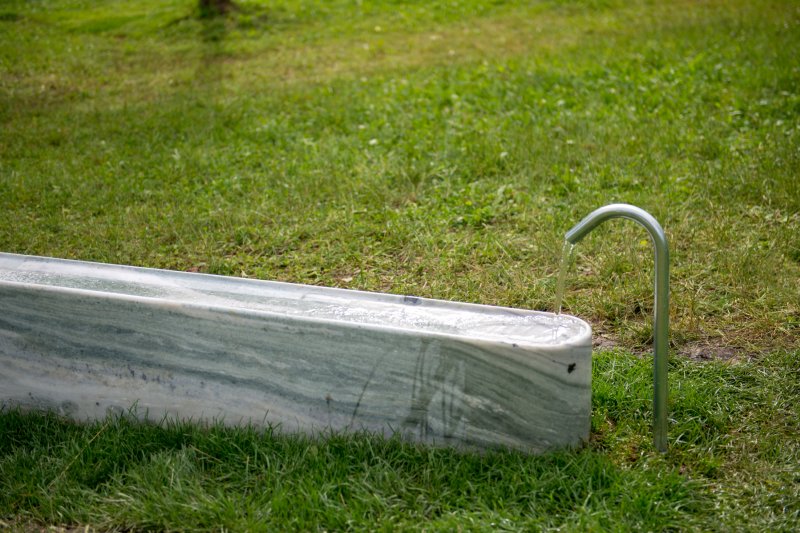 is a narrow channel carved in a marble base, filled with running water.