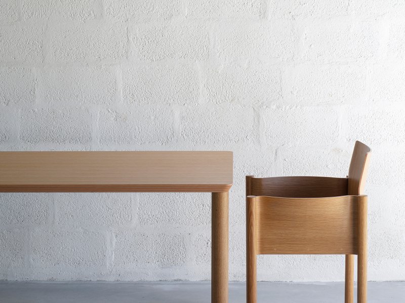 Kawara Armchair’s charm is the use of molded plywood creating a three-dimensionally curved backrest and armrest. Plywood, like other natural materials, can shrink and warp. The backrest, armrest, and seat of this chair are made from three separate molds and the ability of experienced craftsmen to foresee and manage each part's movement has helped create the Kawara Armchair without the need for numerous reinforcement parts.